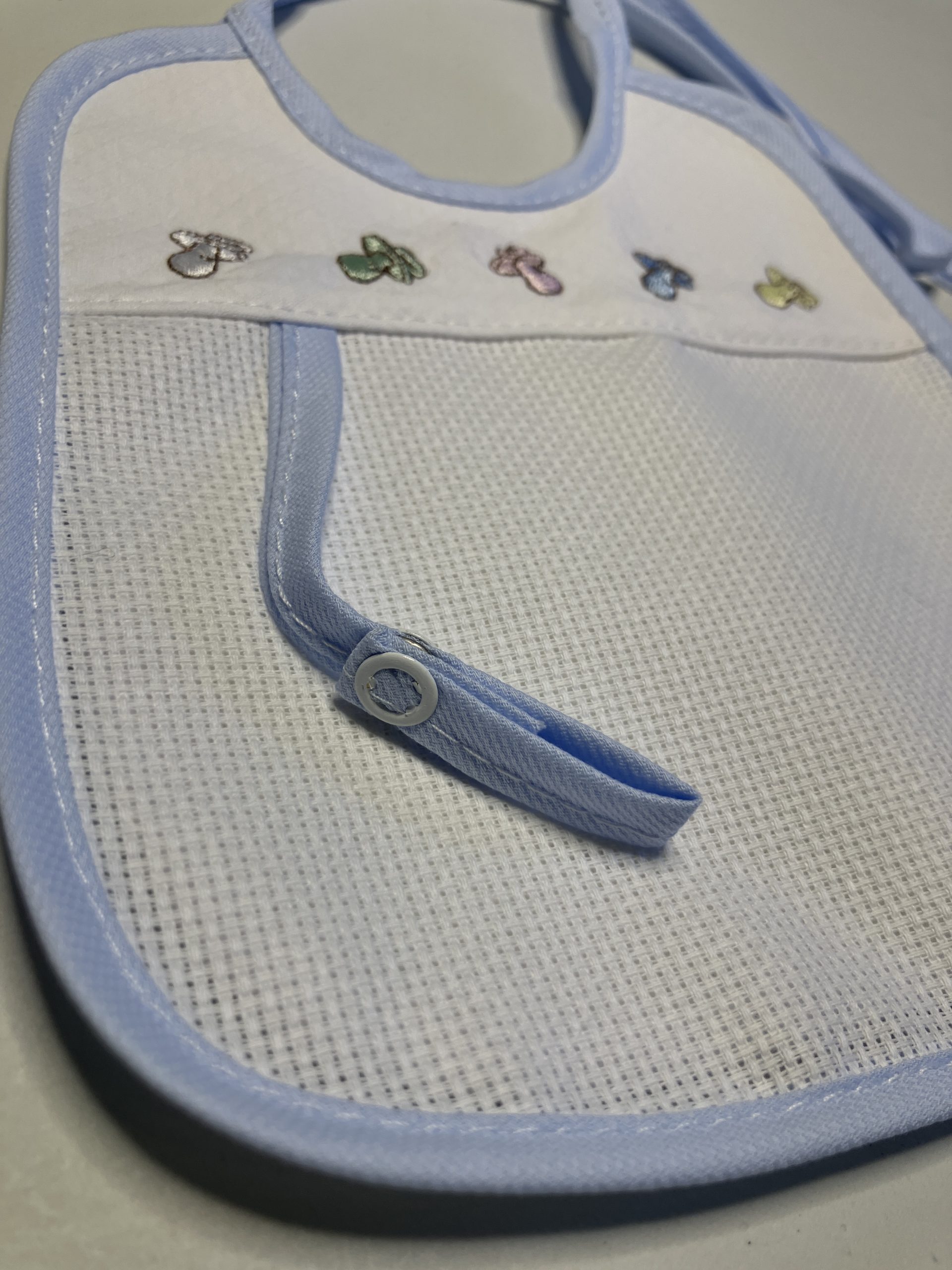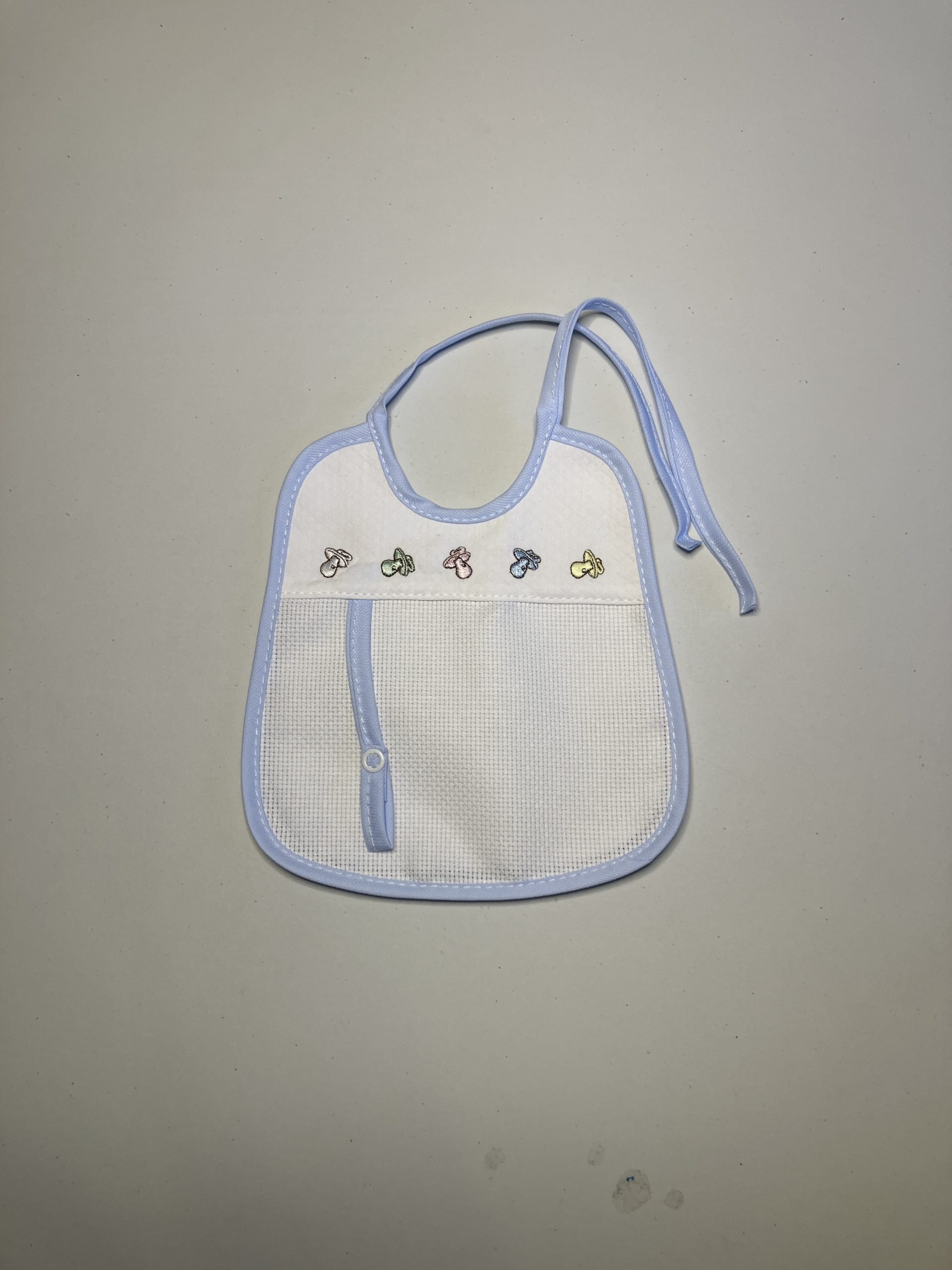 Mantieni il tuo piccolo sempre pulito e il ciuccio a portata di mano con la nostra bavetta per neonato personalizzata con nome ricamato e catenella porta ciuccio integrata. Questo accessorio combina praticità e stile, rendendo il momento della pappa o della dentizione ancora più speciale.