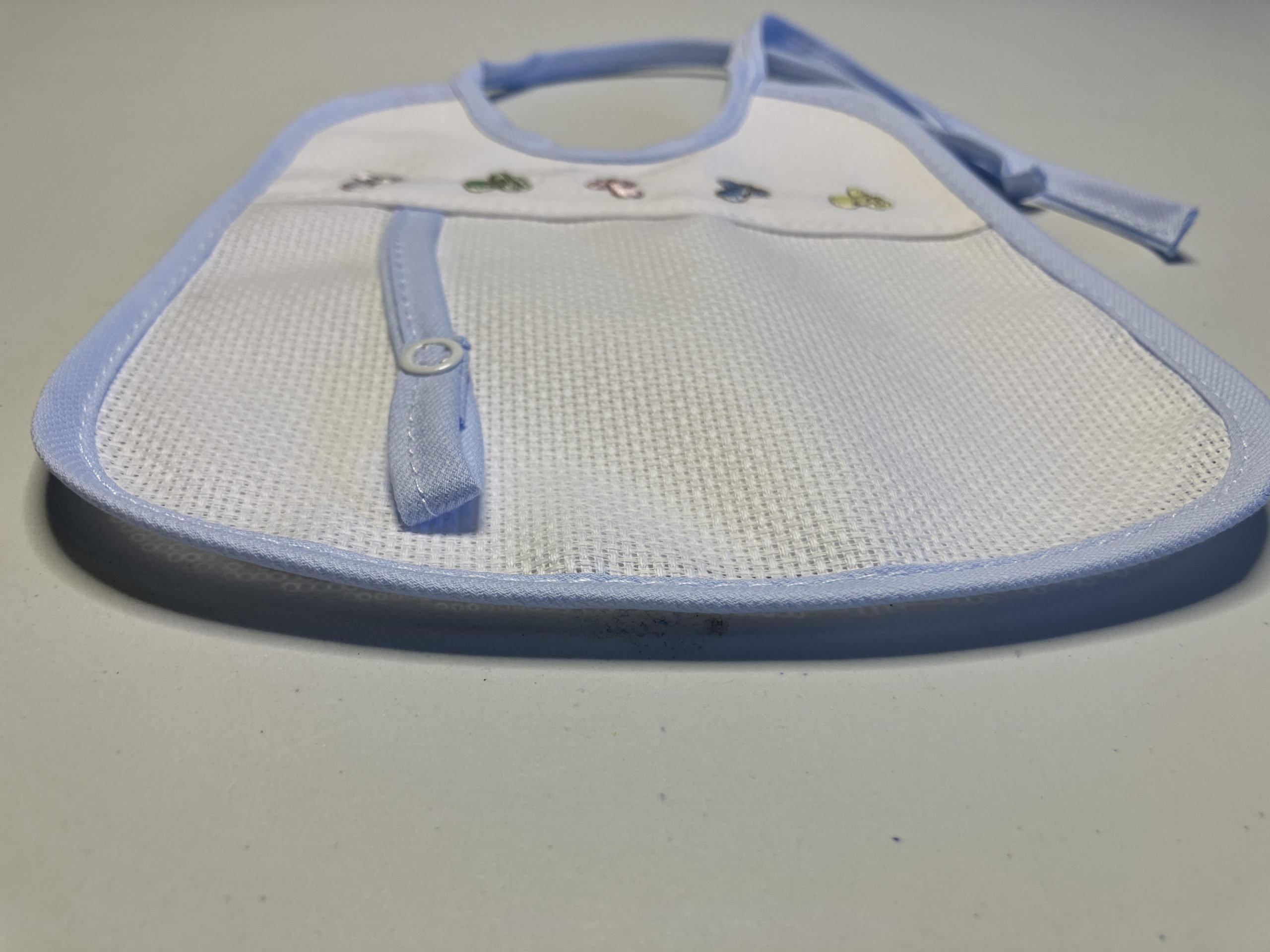 La bavetta è realizzata in cotone 100% di alta qualità, con un retro impermeabile per proteggere i vestitini. La personalizzazione con il nome del bambino ricamato aggiunge un tocco unico, mentre la catenella porta ciuccio integrata tiene il ciuccio sempre a portata di mano, evitando che cada o si perda.
