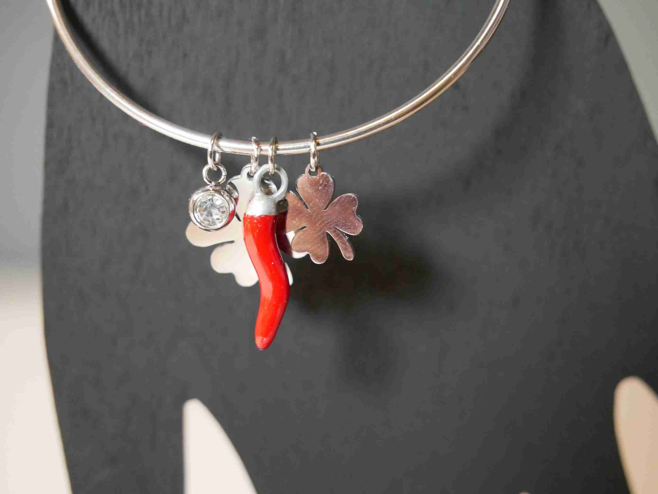 Be the first to review “Bracciale rigido con cornetto e quadrifogli”