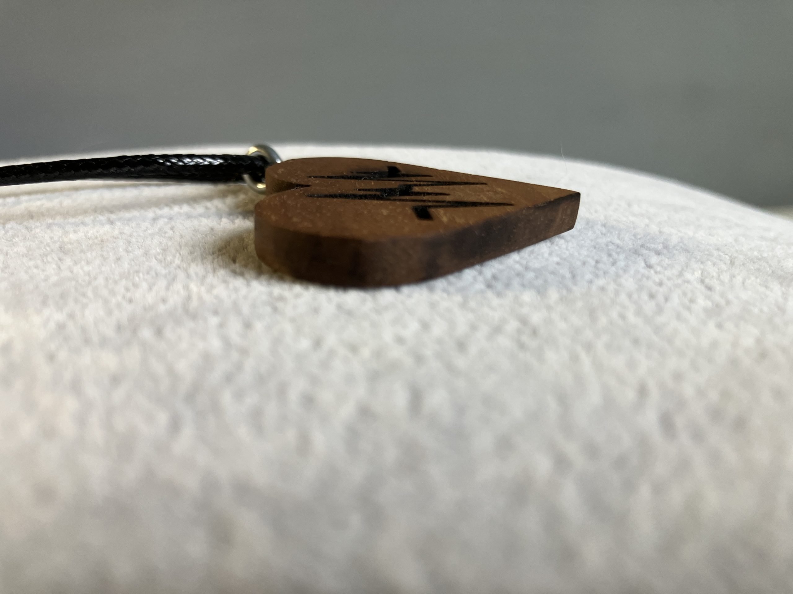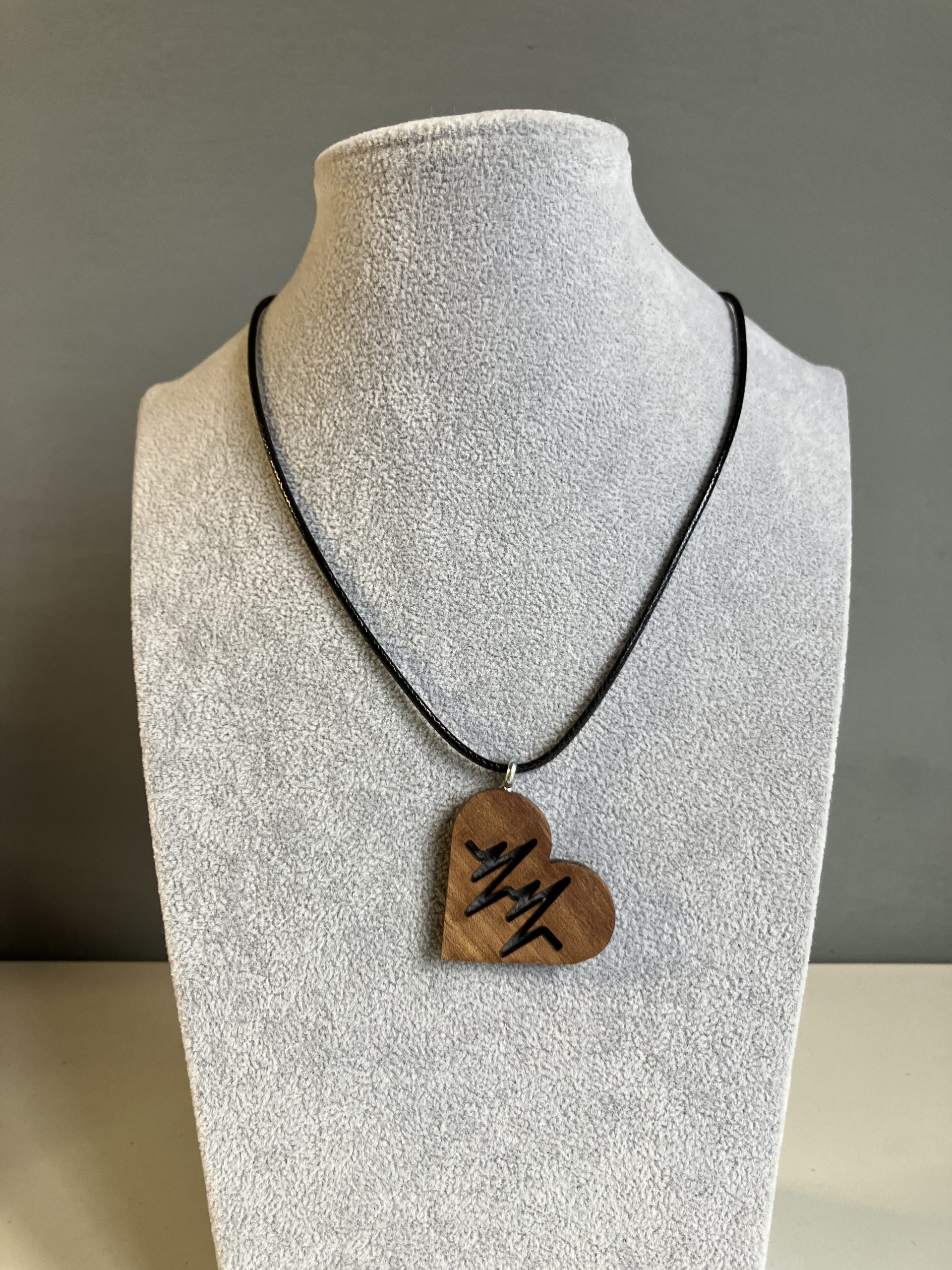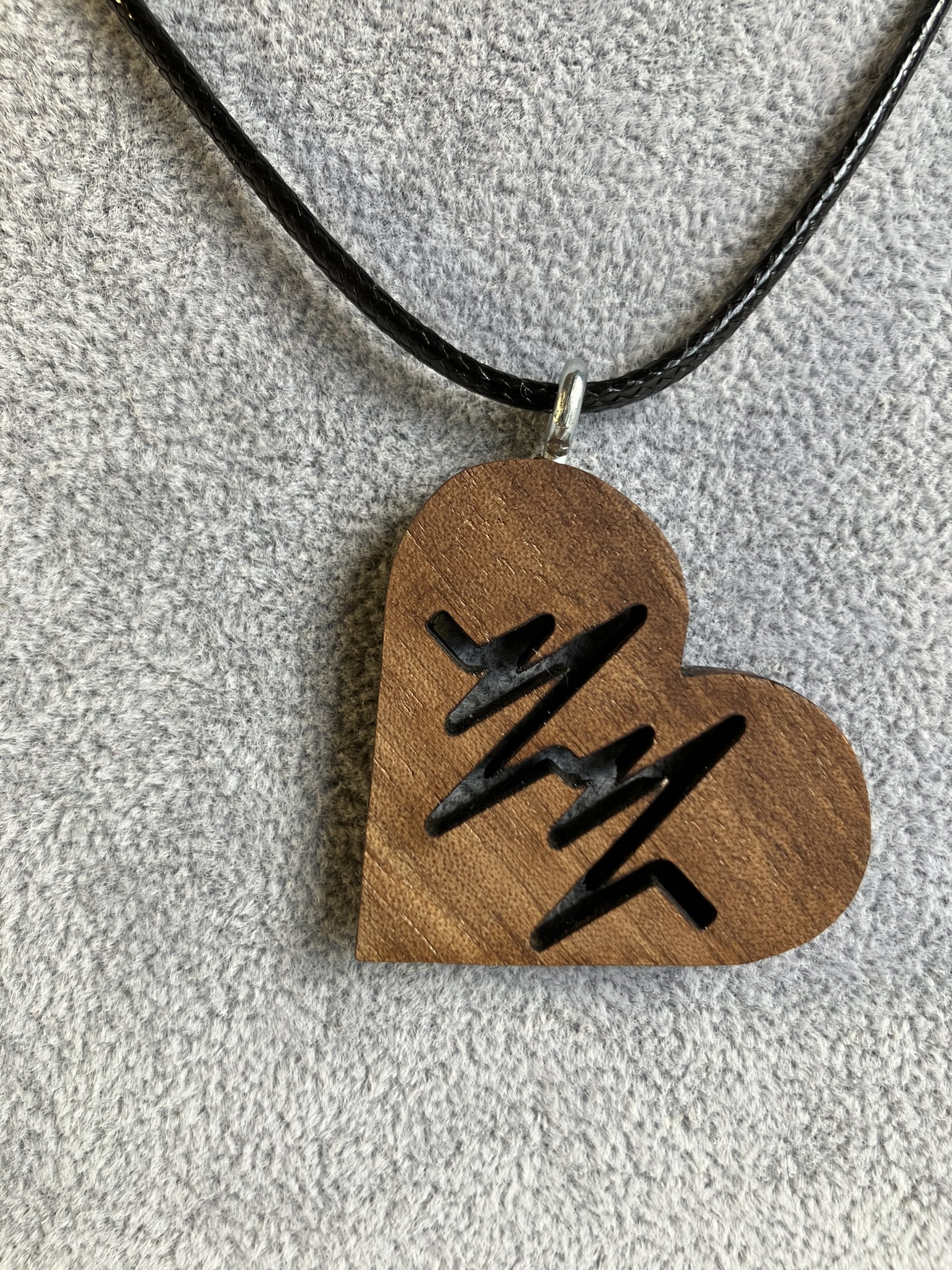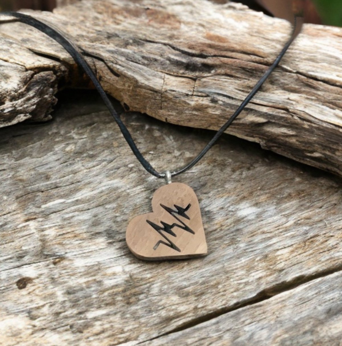 Porta sempre con te il ritmo del cuore con questa collana artigianale unica. Il ciondolo a forma di cuore, realizzato in legno di noce, è inciso con precisione laser con il simbolo di un battito cardiaco, un design moderno e significativo che celebra la vita e l’amore. La finitura a mano rende ogni pezzo unico, mentre il cordino nero regolabile lo rende comodo da indossare in ogni occasione.
