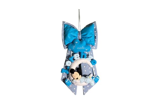 Questo fiocco Mickey che Dorme è la scelta ideale per annunciare la nascita del tuo bimbo o della tua bimba, perfetto per decorare la porta di casa, il balcone o la cameretta. Il design semplice ma raffinato si adatta a qualsiasi tipo di arredamento, dai colori pastello tenui che si sposano facilmente con ogni ambiente, ai dettagli Disney che infondono un’atmosfera gioiosa e serena.