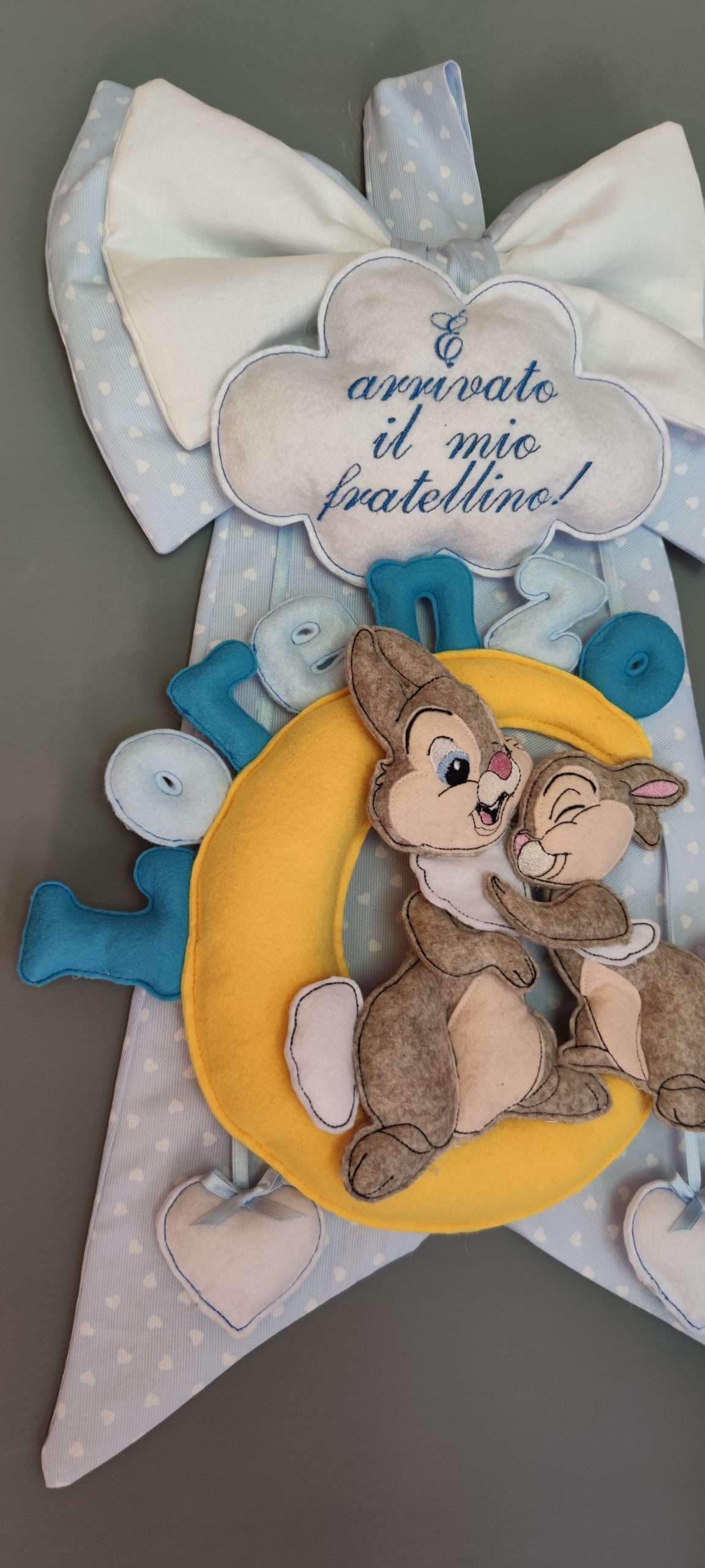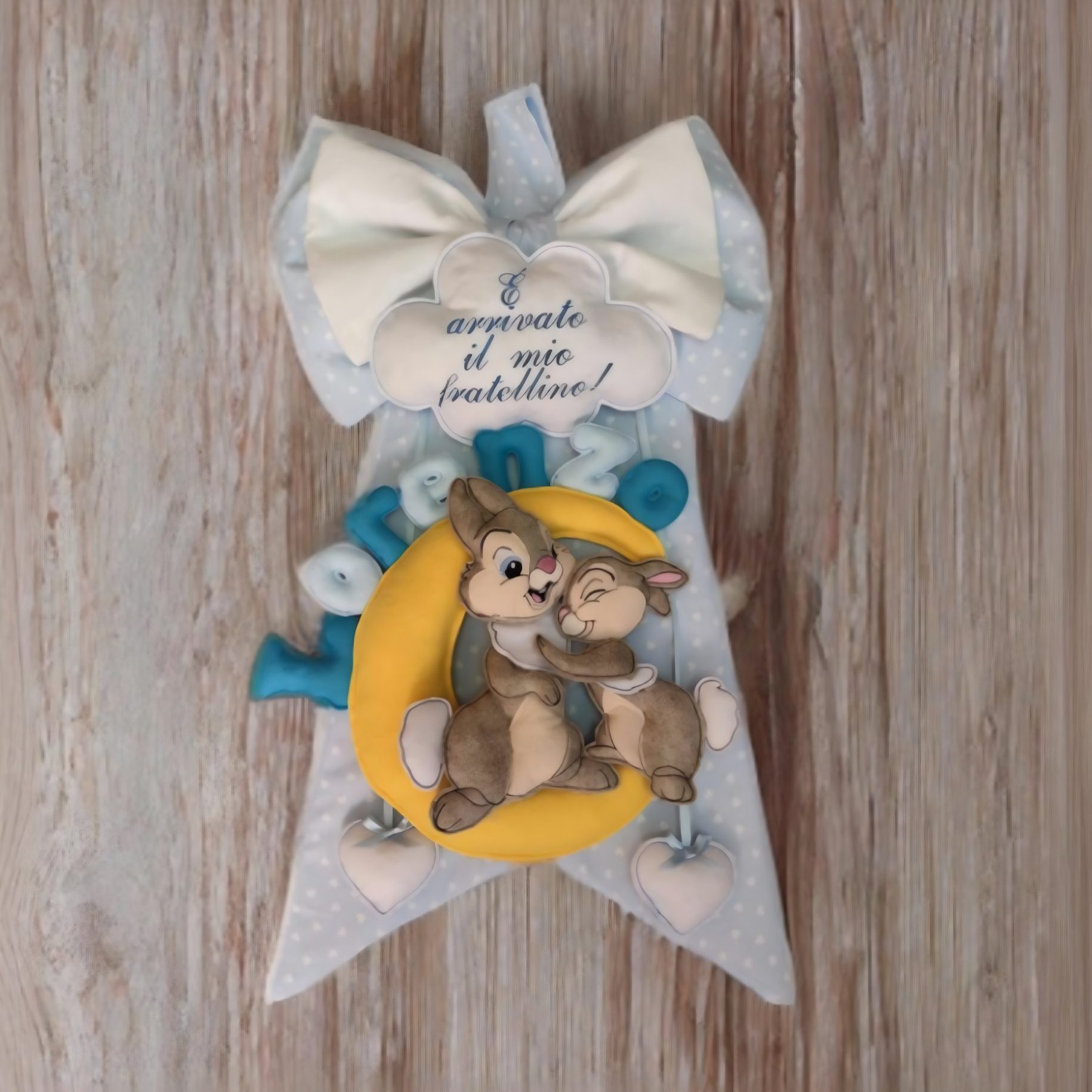 Il Fiocco Nascita con Coniglietti Disney Realizzato Artigianalmente in Tessuto di Cotone e Morbidissimo Pannolenci