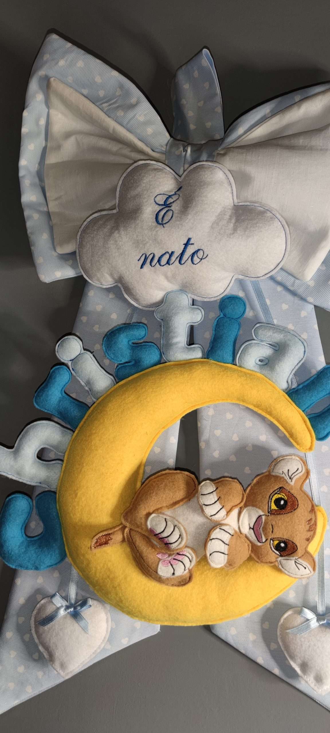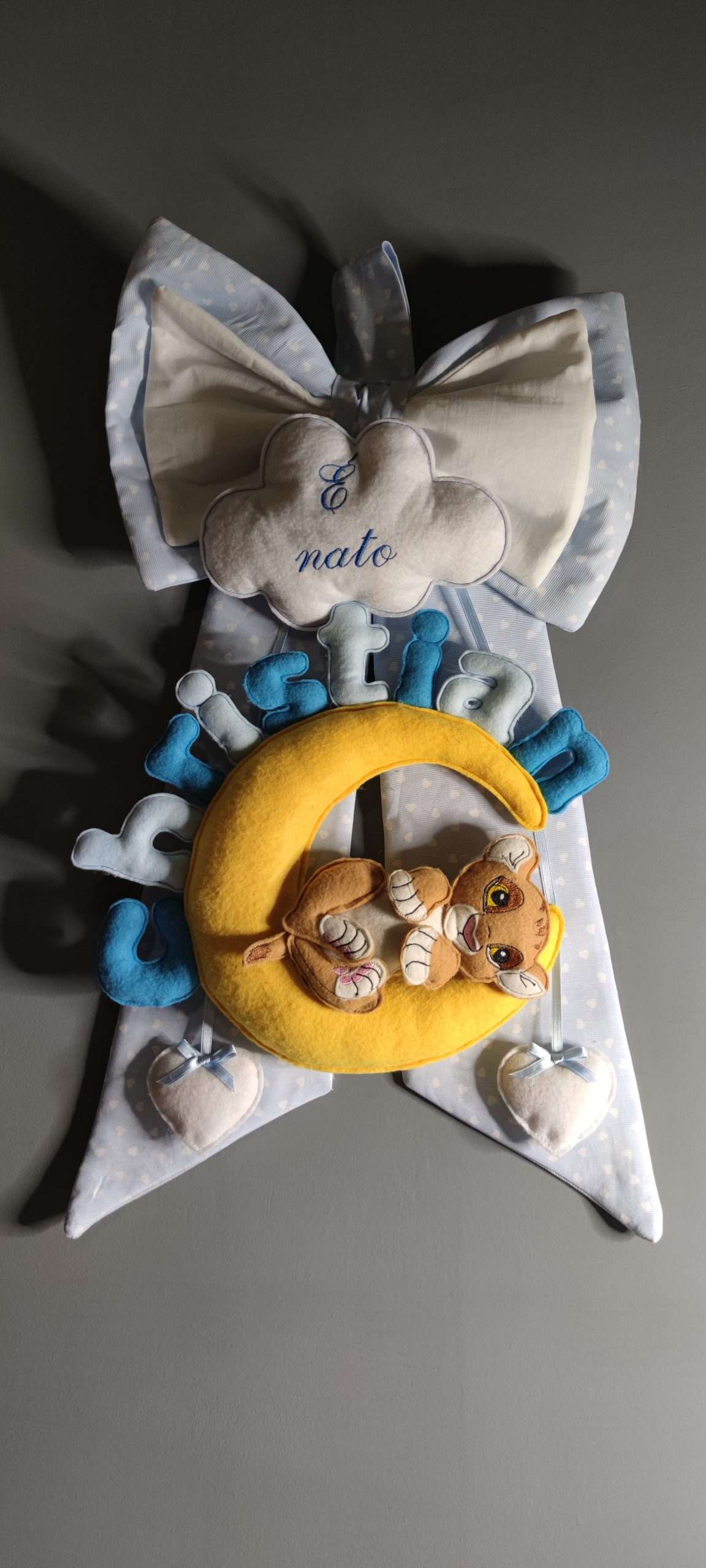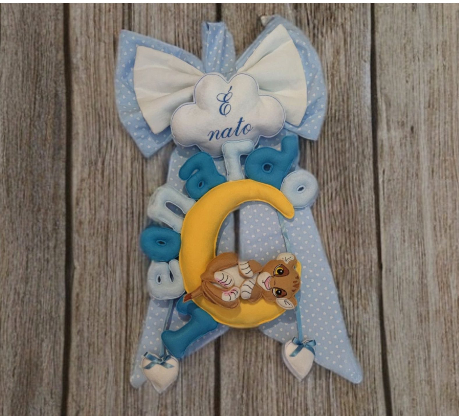 Questo fiocco nascita artigianale non solo celebra la gioia di una nuova vita, ma anche l’amore per uno dei classici più amati della Disney, Il Re Leone. È un regalo perfetto per i nuovi genitori, che potranno appendere questa bellissima creazione alla porta di casa o nella cameretta del neonato, come simbolo di benvenuto e di inizio di una nuova, meravigliosa avventura.