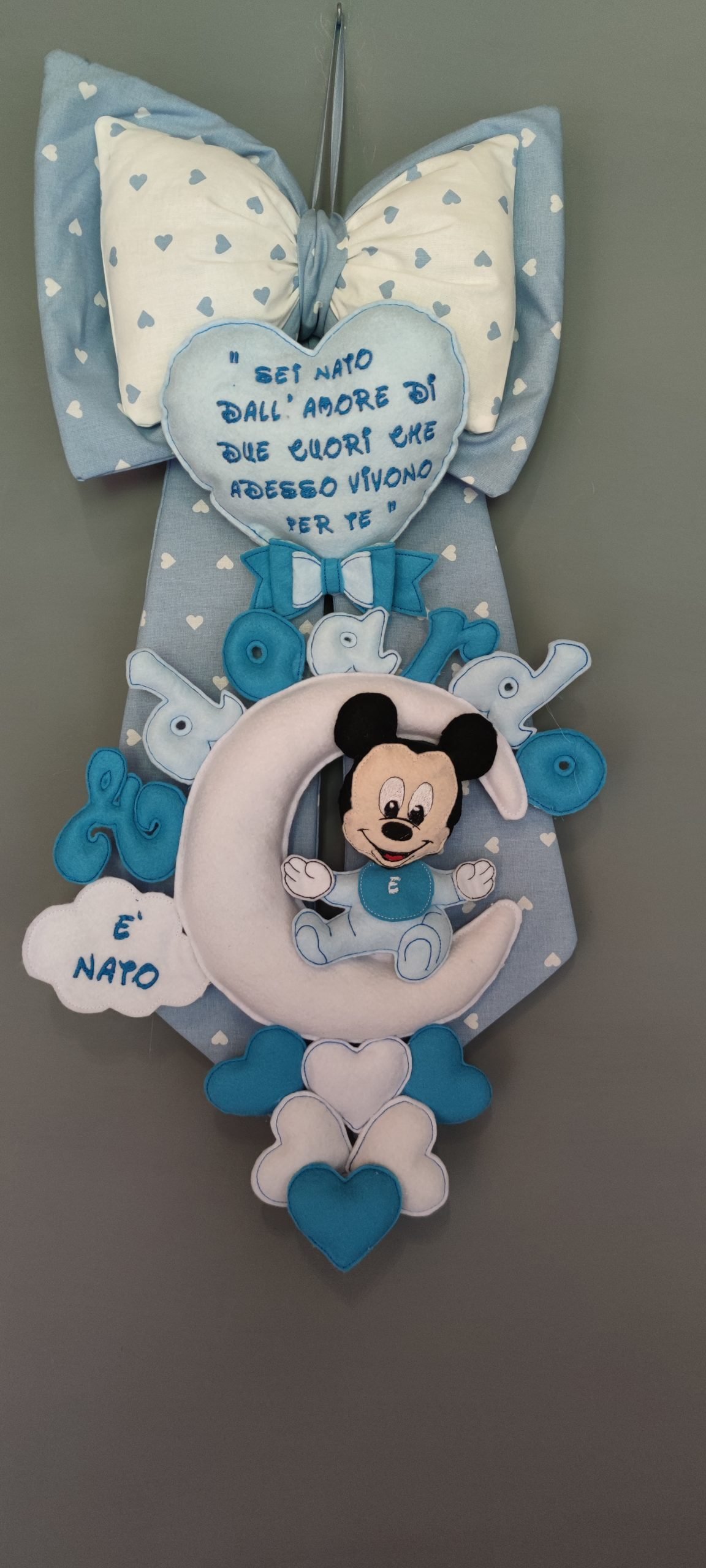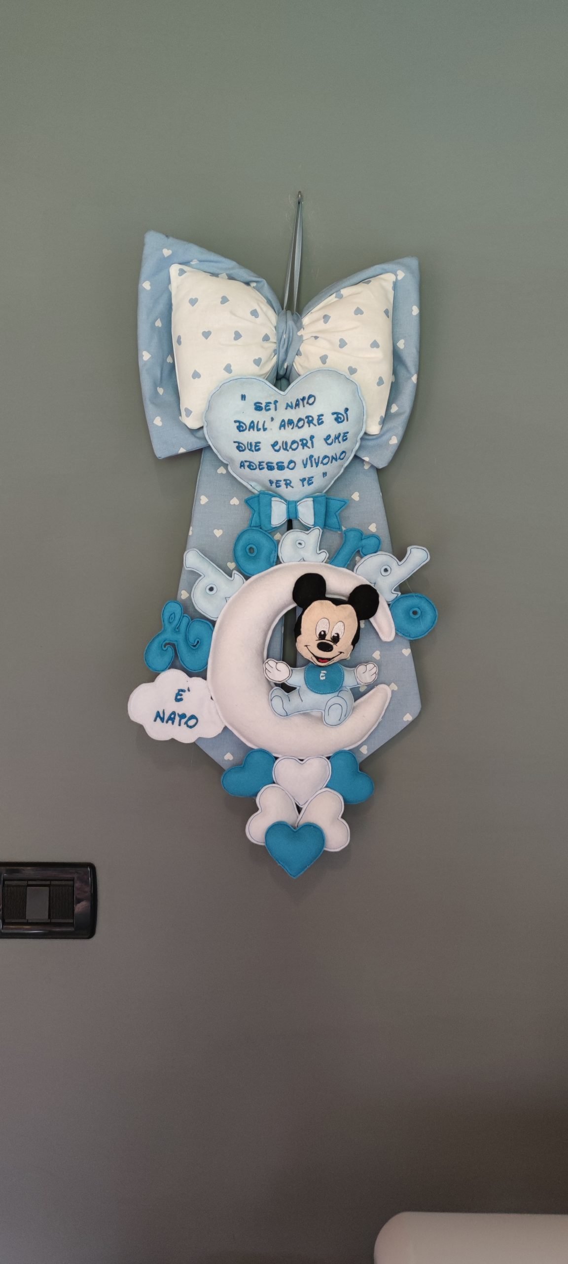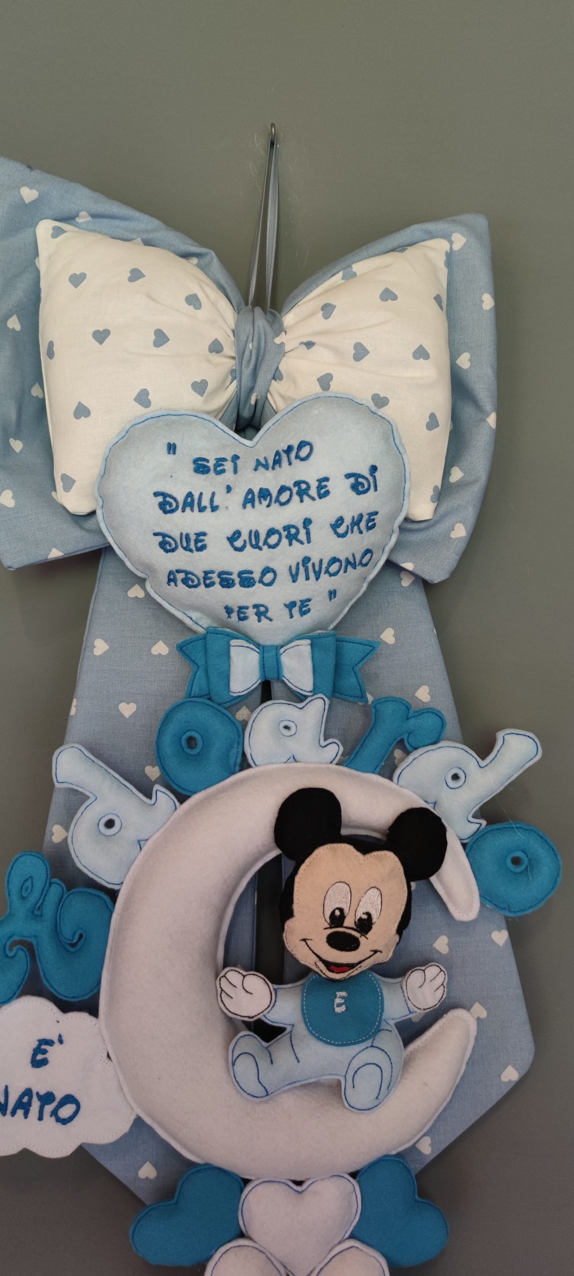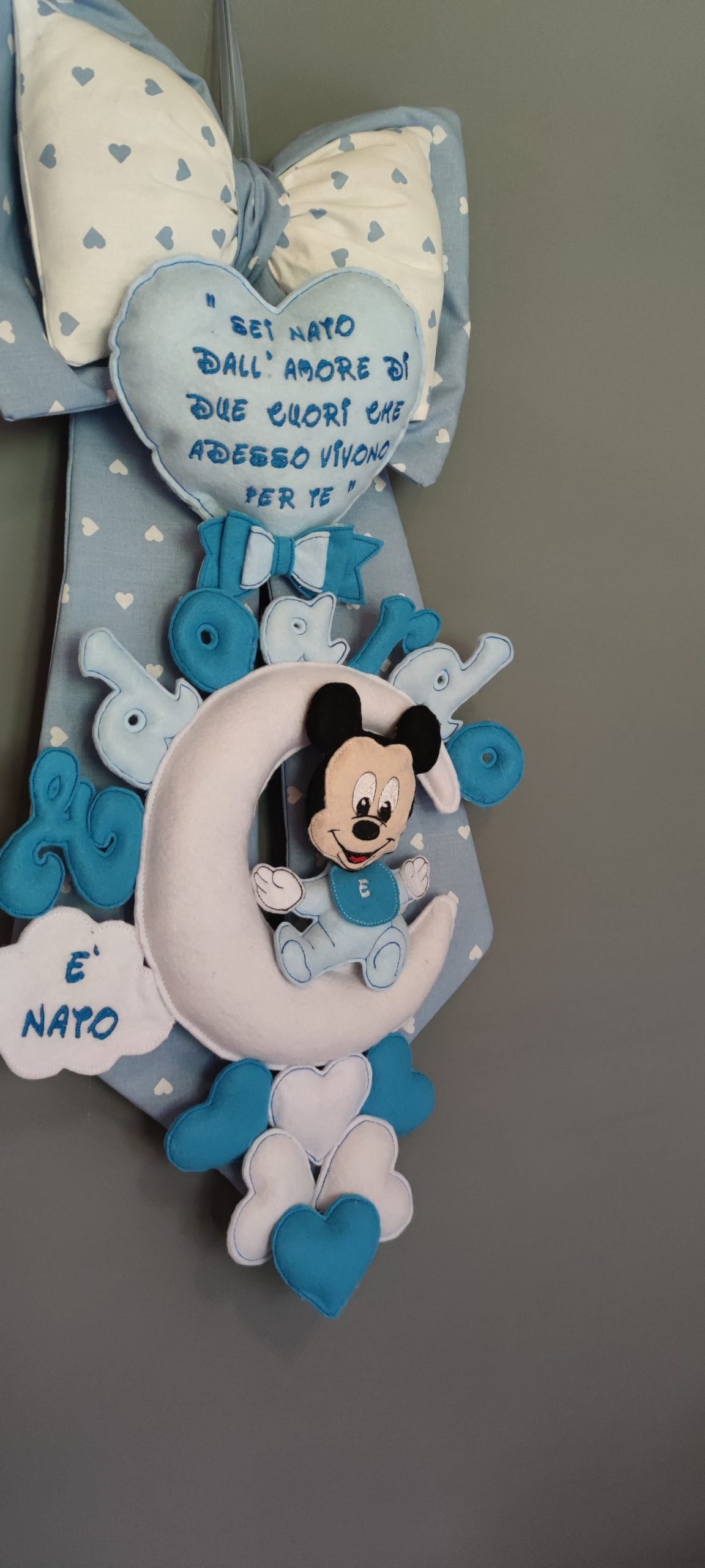 Festeggia l’arrivo del tuo piccolo tesoro con un fiocco nascita artigianale, unico e speciale, ispirato alla magia Disney!