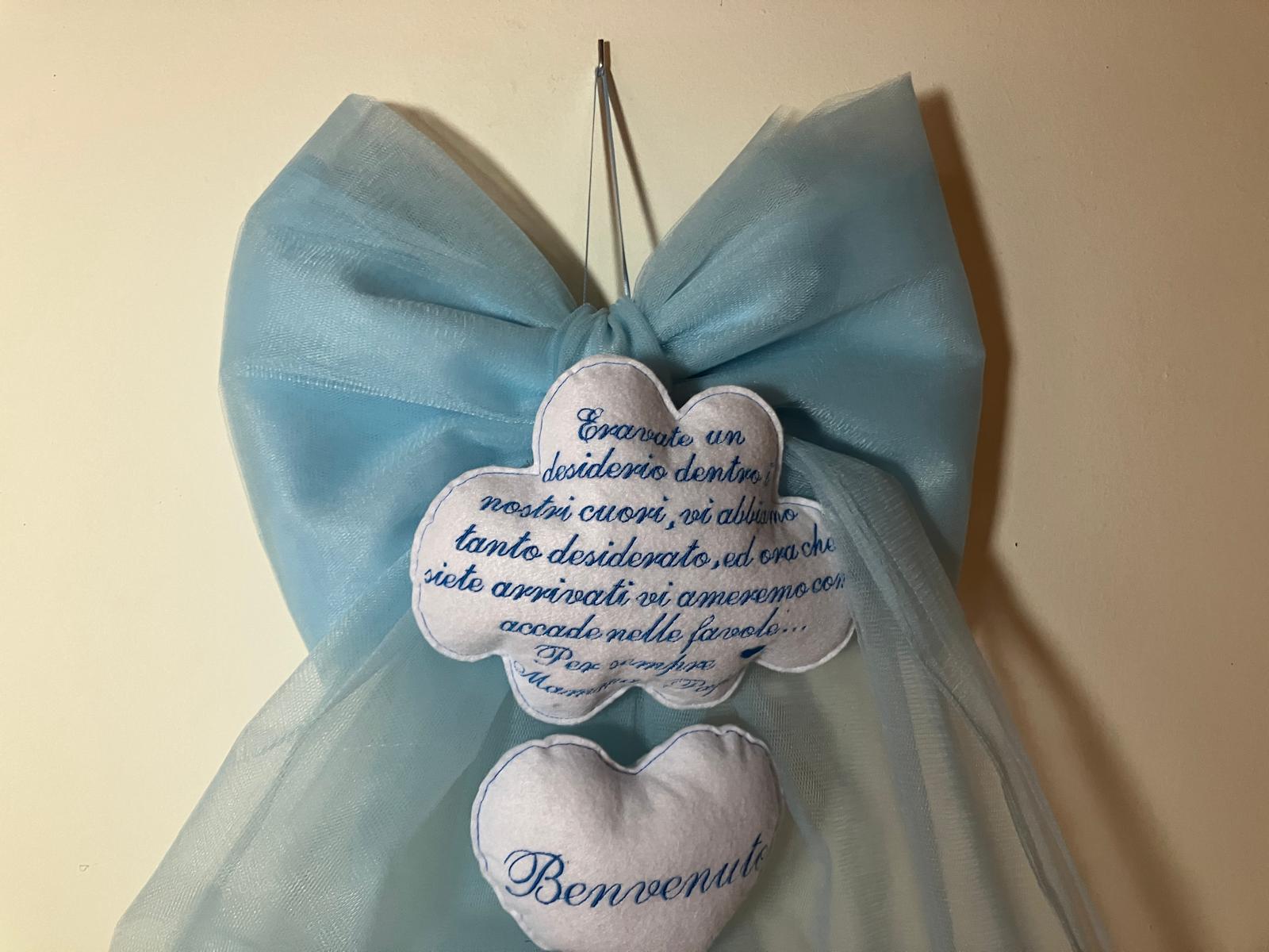 - Personalizzazione Completa: Il nome e la frase “È nato/a” sono ricamati a mano, per rendere il fiocco un ricordo speciale e unico, da conservare nel tempo.