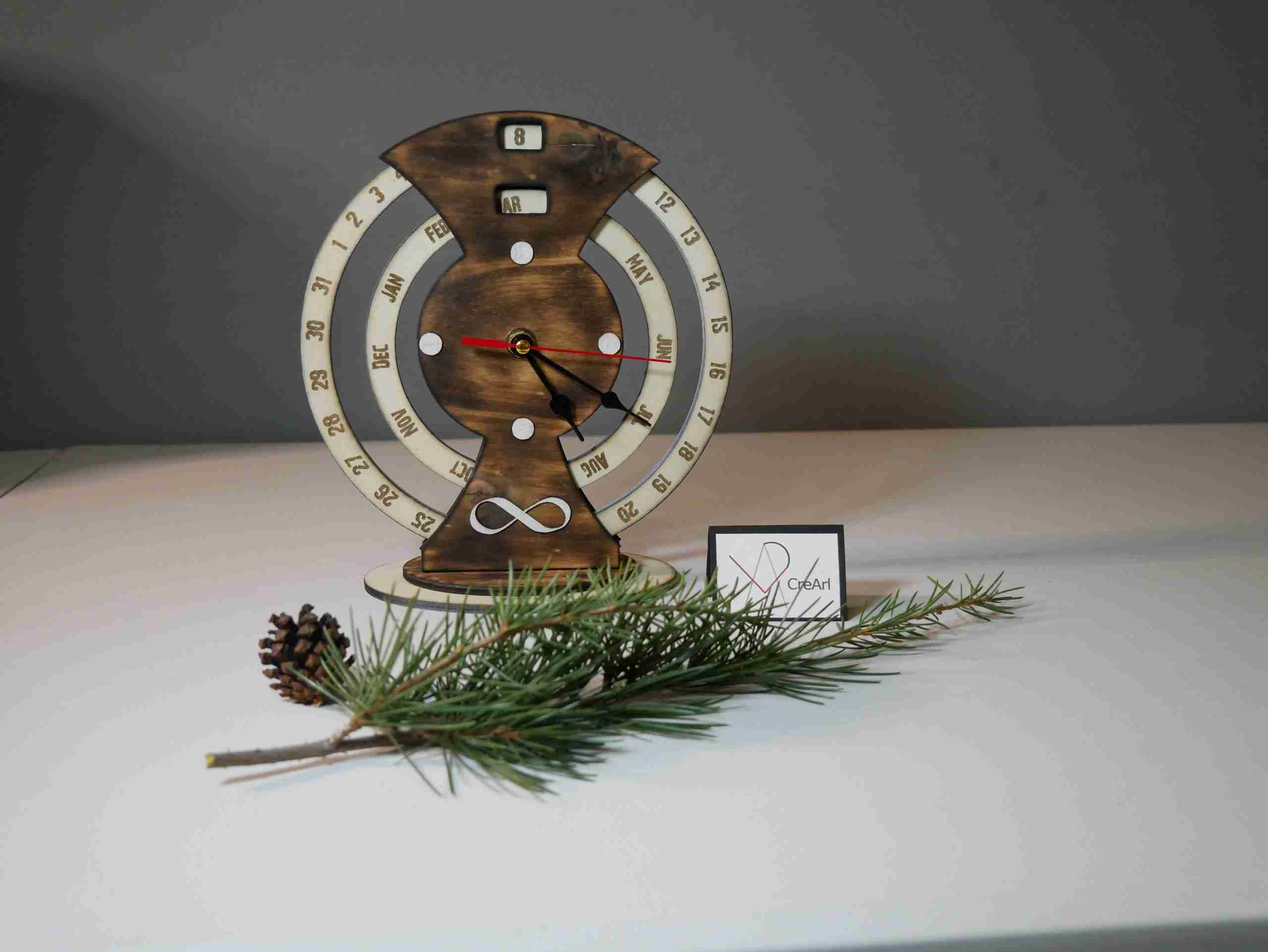 Illumina la tua scrivania con l’eleganza senza tempo di questo esclusivo orologio e calendario da tavolo perpetuo in legno. Realizzato con maestria artigianale e caratterizzato da linee pulite e un design minimalista, questo pratico complemento d’arredo è una combinazione perfetta di funzionalità e stile.