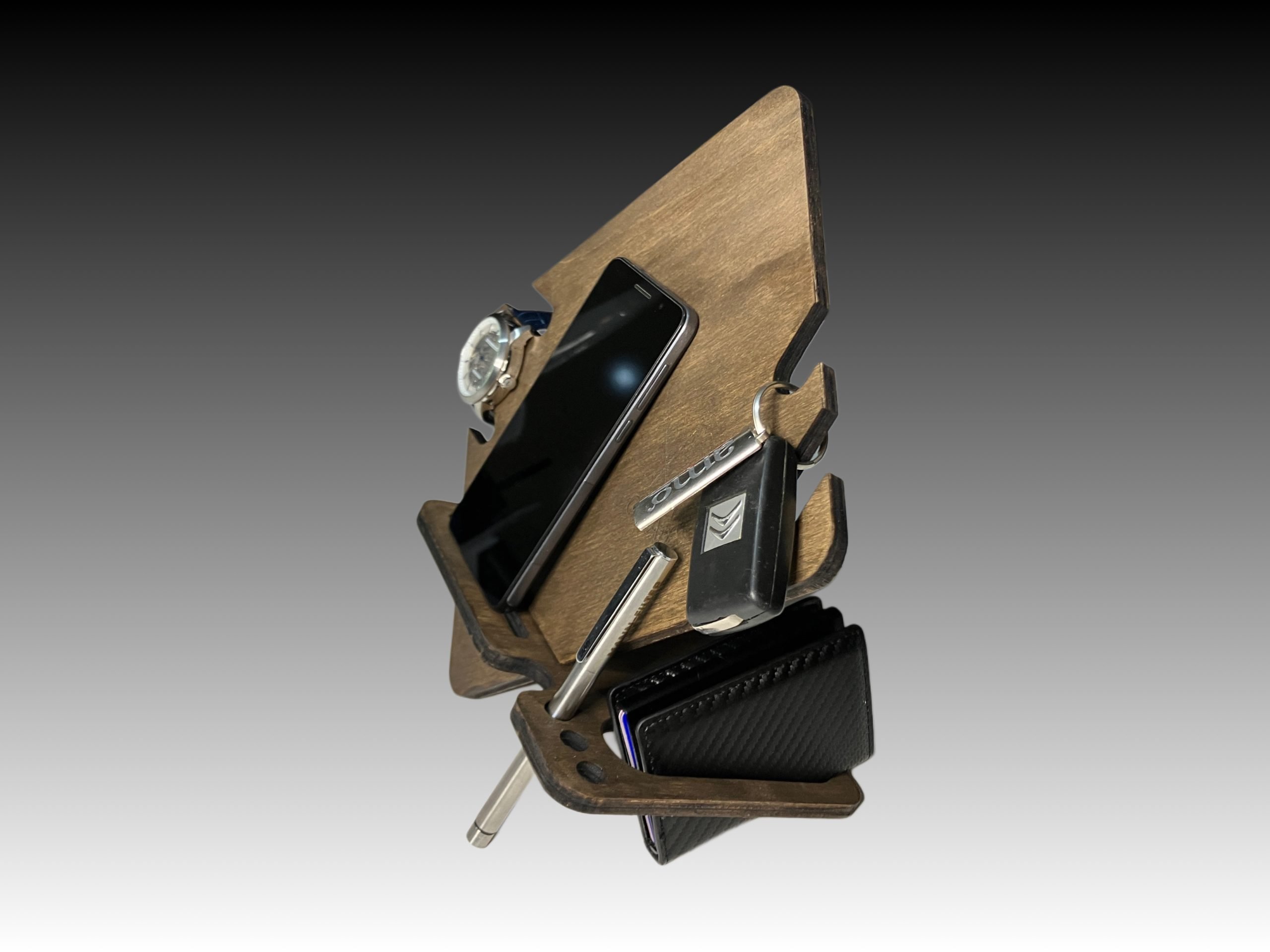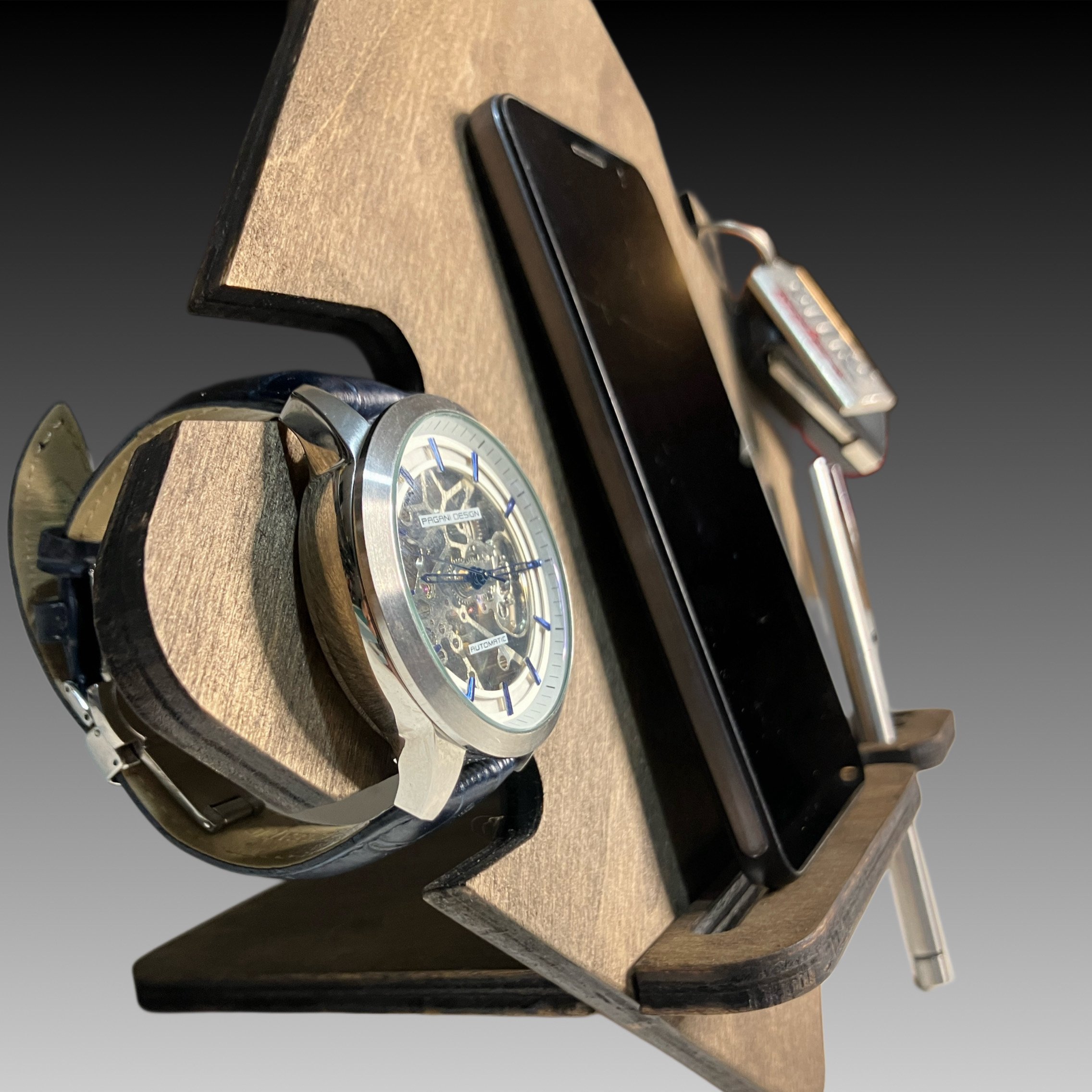 Organizza i tuoi accessori quotidiani con stile grazie al nostro stand multifunzionale in legno. Realizzato con materiali naturali e un design minimalista, questo portaoggetti è perfetto per tenere a portata di mano telefono, chiavi, orologio e penna.