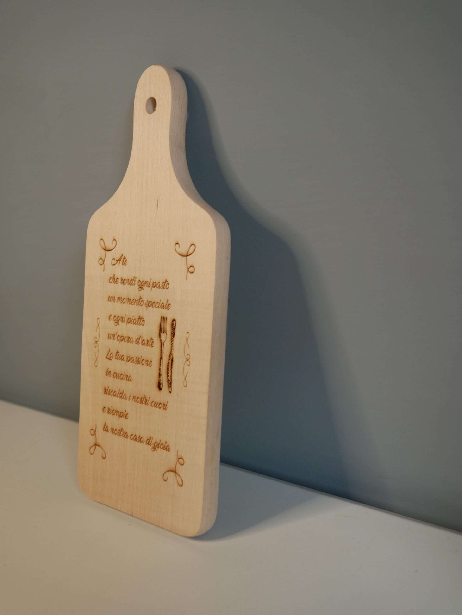 Scopri il nostro tagliere in legno di faggio personalizzato con frase incisa, un accessorio unico e raffinato per la tua cucina. Realizzato con materiali di alta qualità, perfetto per essere utilizzato sia come elemento decorativo che funzionale. La personalizzazione con una frase a tua scelta rende questo tagliere un regalo ideale per occasioni speciali, come matrimoni, anniversari o feste di inaugurazione. Aggiungi un tocco personale alla tua cucina o sorprendi i tuoi cari con un regalo che resterà nel tempo.