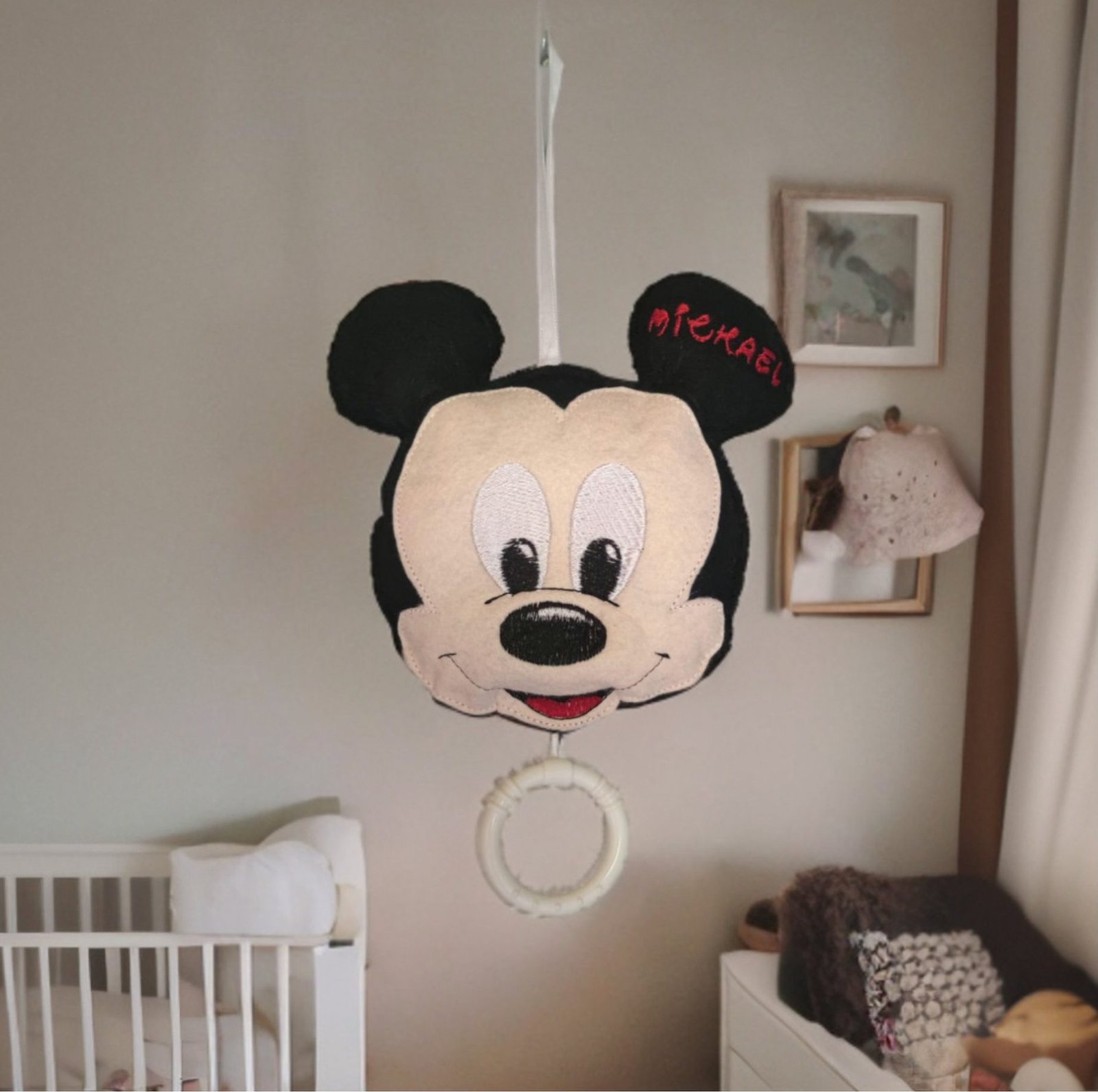 Regala un momento di dolcezza e serenità con questo Carillon Personalizzato da Appendere, perfetto per la cameretta del tuo bambino. Realizzato artigianalmente, presenta un simpatico personaggio ricamato e il nome personalizzato, rendendolo un pezzo unico e speciale.